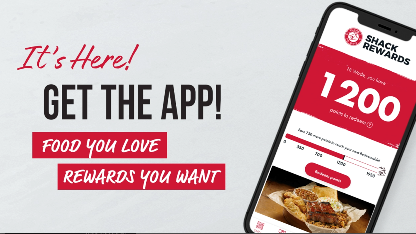 Our new and enhanced rewards program is finally here! The Shane's Rib Shack App gives our loyal customers the ability to earn points with every purchase. Eat, Earn, Redeem, Repeat!